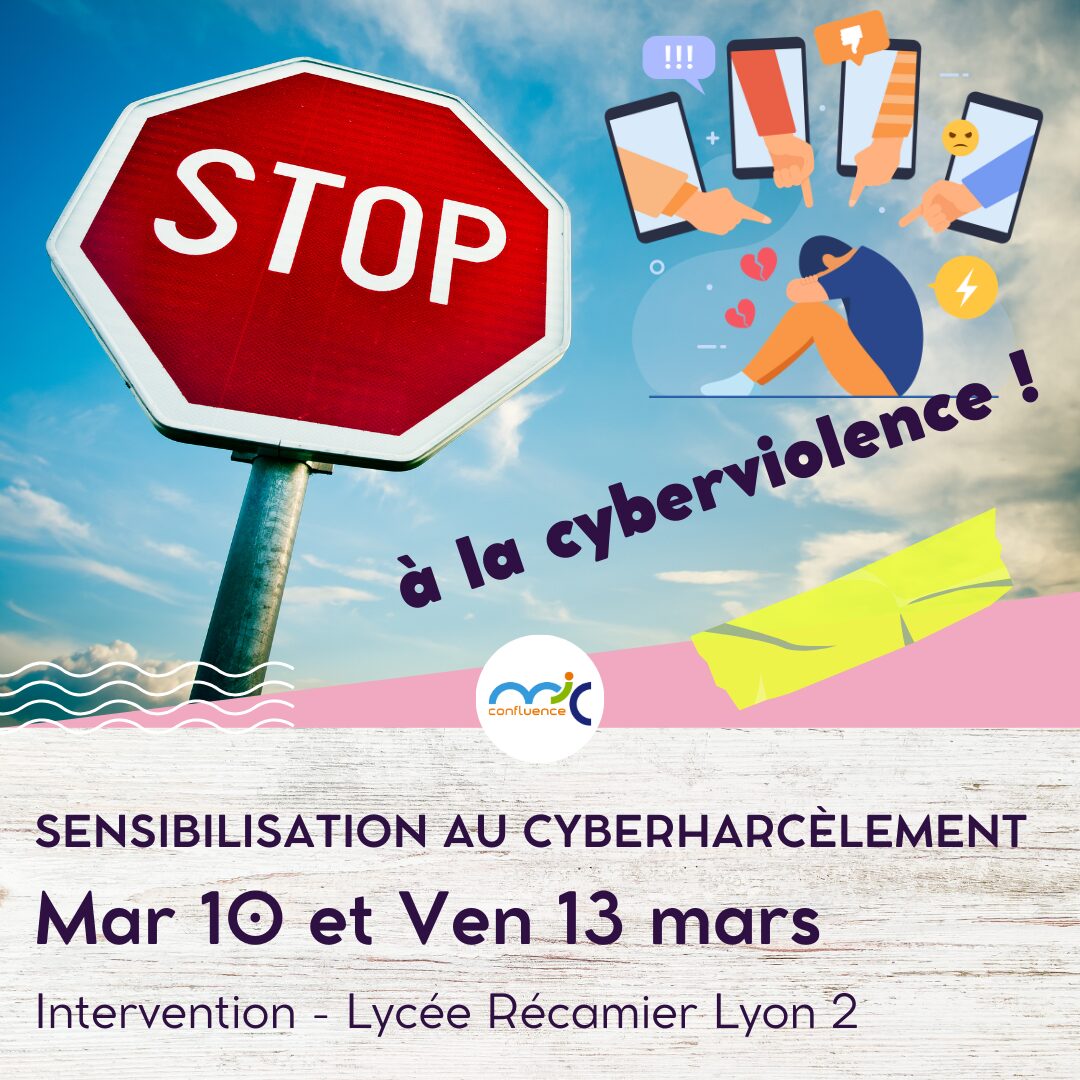 Le 10 et 13 mars, Sofia et Joyce accompagnent les élèves du Lycée Juliette Récamier dans la sensibilisation au cyberharcèlement sous forme d’une simulation de procès.